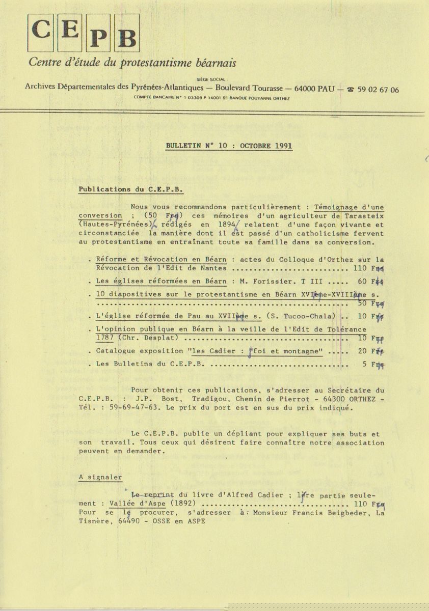 Bulletin n°10, octobre 1991Bulletin n°10, octobre 1991