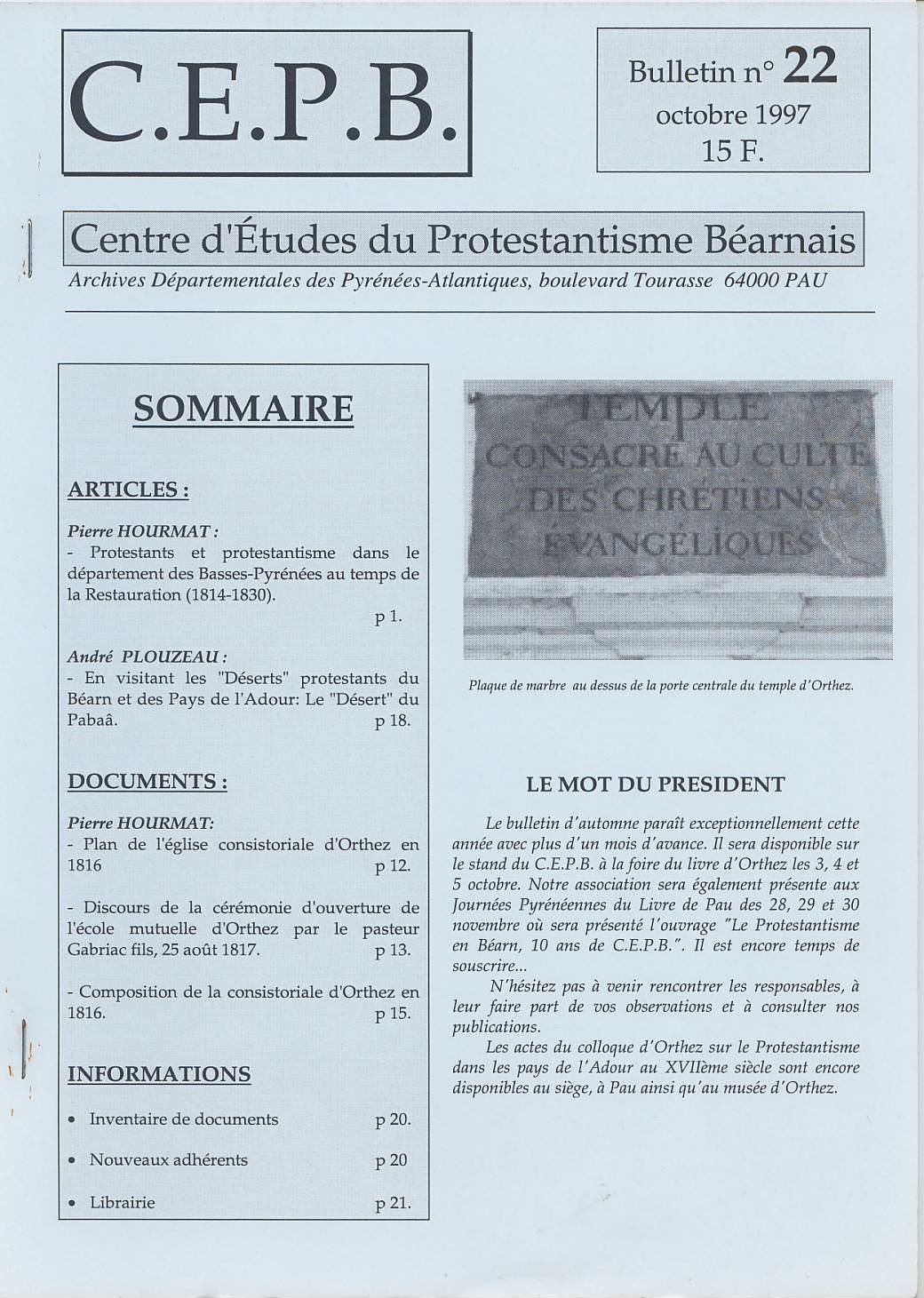 Bulletin n°22, octobre 1997